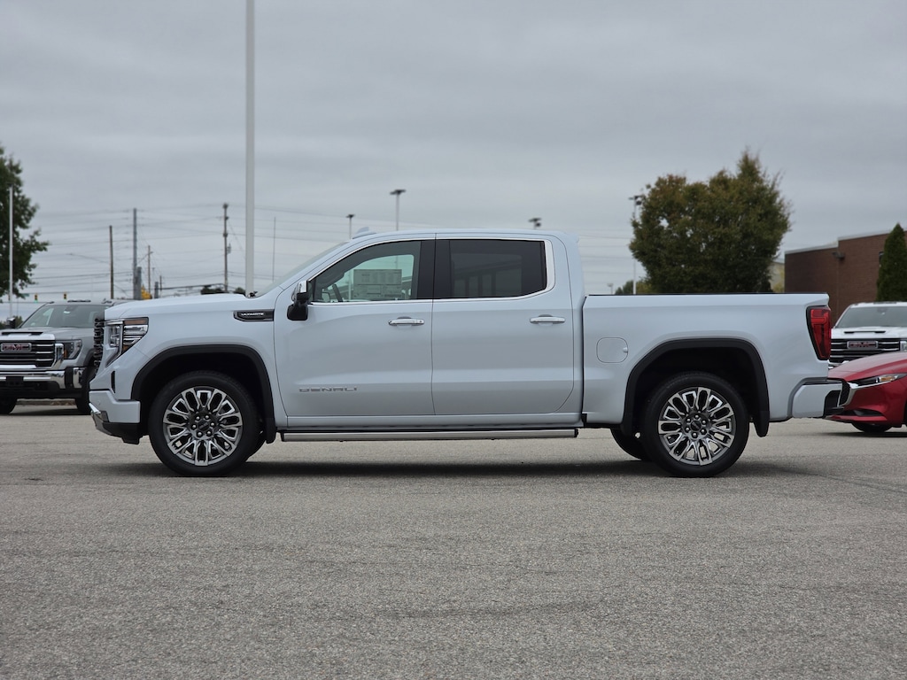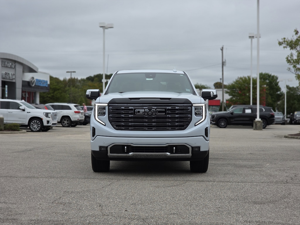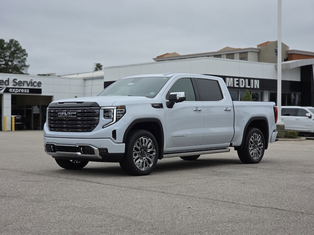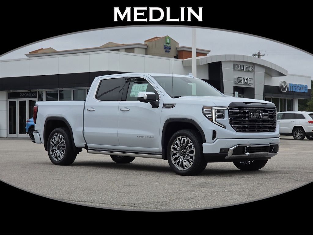 Glacier White Tricoat 2026 GMC Sierra 1500 Denali Ultimate 4WD 10-Speed Automatic 3.0L I6 10-Speed Automatic, 4WD, Alpine Umber Leather.