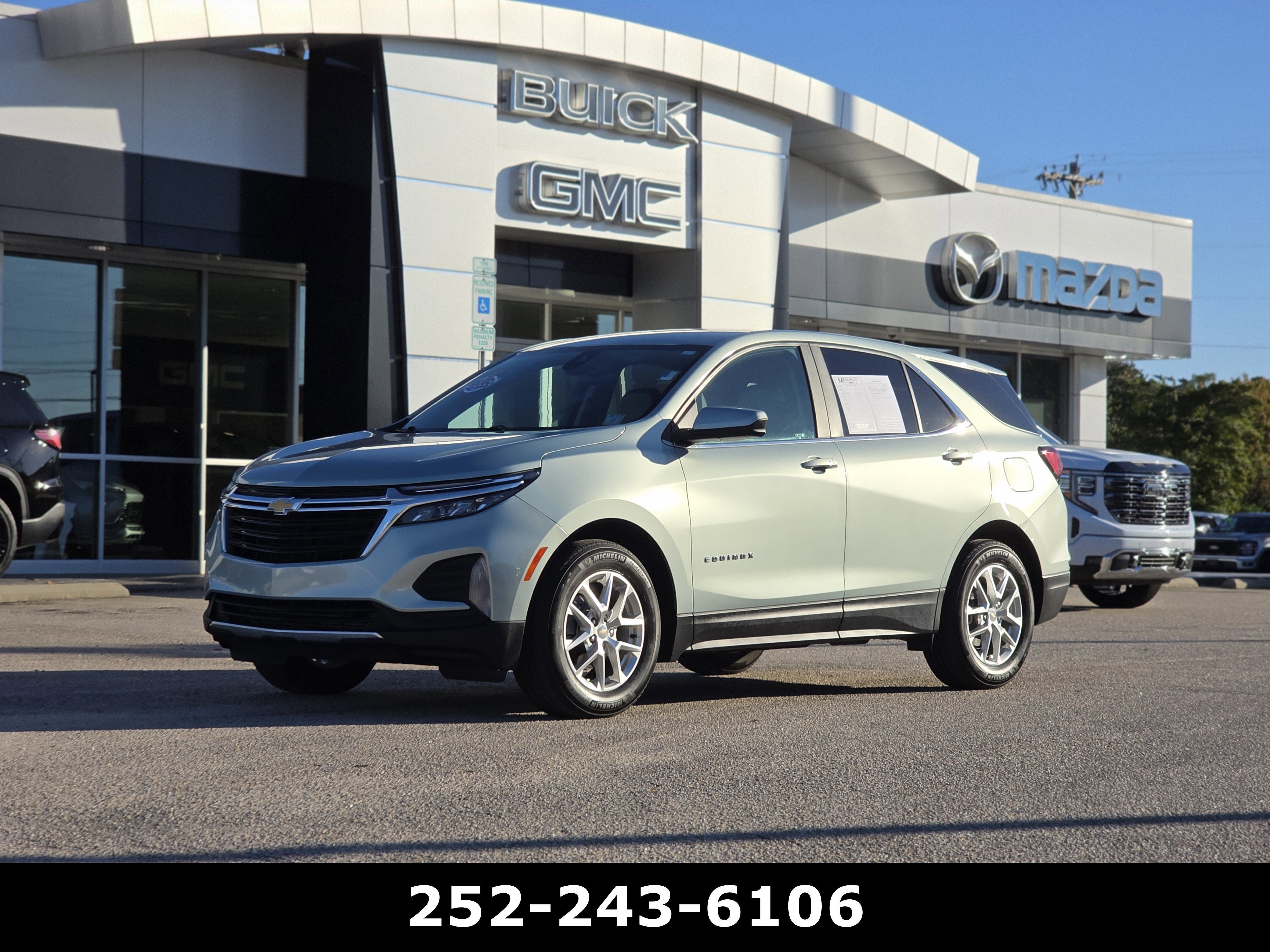 Discover the perfect balance of style, performance, and practicality with this 2022 Chevrolet Equinox LT. Boasting a sleek blue exterior and a spacious, well-appointed interior, this Equinox is ready to elevate your driving experience.Featuring a carefully curated list of premium amenities, this Equinox is designed to cater to your every need. Enjoy the convenience of -- Wireless Apple CarPlay/Wireless Android Auto- Preferred Equipment Group 1LT- 6 Speaker Audio System Feature- Bluetooth® For Phone- Power driver seat- Remote keyless entry- Steering wheel mounted audio controls- 4-Wheel Disc Brakes- ABS brakes- Dual front impact airbags- Dual front side impact airbags- Electronic Stability Control- Auto High-beam Headlights- Security system- Speed controlThis Equinox also delivers exceptional efficiency, with an impressive 26 city/31 highway MPG, ensuring you can go further on every tank.Beneath the stylish exterior lies the power and performance you crave. The 1.5L DOHC engine, paired with a 6-Speed Automatic Electronic transmission, provides a smooth and responsive driving experience. Whether navigating city streets or tackling winding roads, this Equinox delivers the confidence and control you desire.Safety is also a top priority, with a suite of advanced features like OnStar and Chevrolet connected services, ensuring you and your loved ones can travel with peace of mind.With its well-appointed interior, efficient powertrain, and comprehensive safety suite, this 2022 Chevrolet Equinox LT is the perfect blend of style, performance, and practicality. Experience the difference for yourself and schedule a test drive today.All of our Pre-Owned vehicles are looked at by a GM or MAZDA CERTIFIED technician in our service department. They are fully reconditioned before going out on the lot. Medlin takes pride in selling the best overall value/quality pre-owned vehicles at the best price. We use a no-haggle approach so our customers know they are getting the best value upfront. Come by and meet our friendly team here in beautiful Wilson, NC! We do not have addendums or hidden markups on our vehicles. Online price does not include state taxes, state fees, or $749 doc fee. All of our vehicles are priced to market so you can avoid the artificial markups and stressful negotiations. We put our best price online every time! 1900 S Tarboro St Wilson, NC 27893.