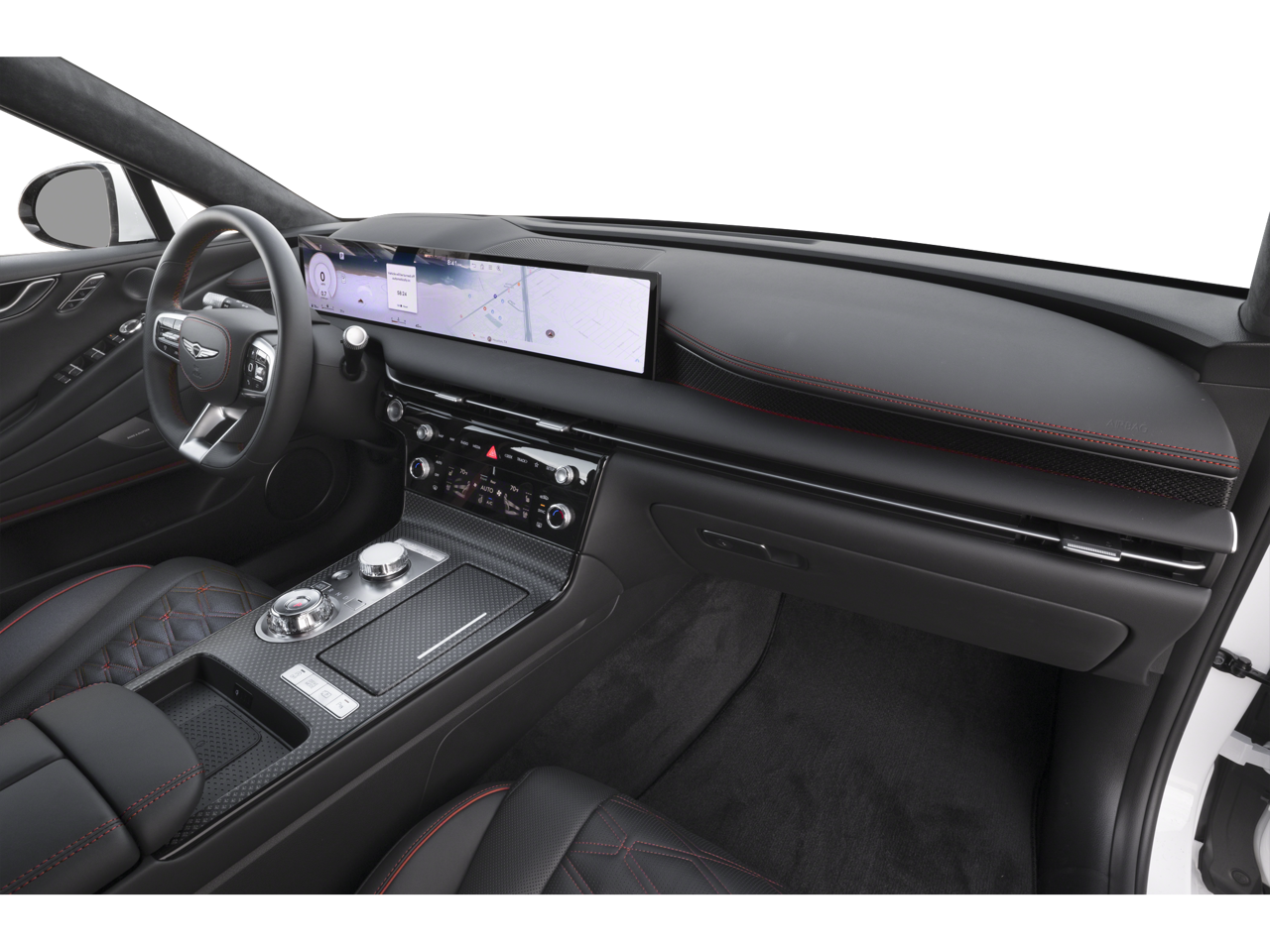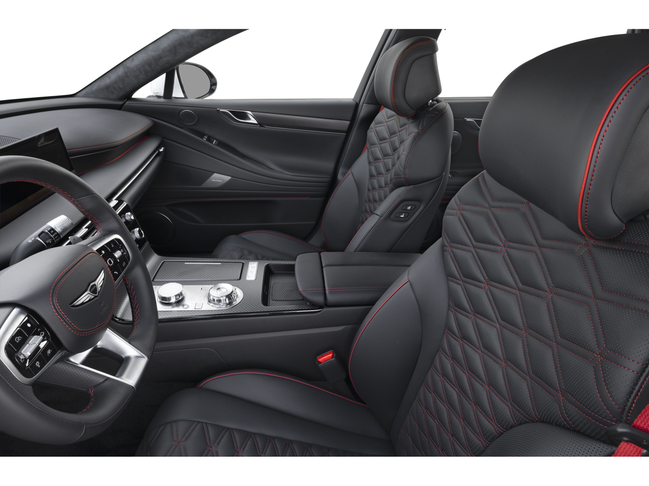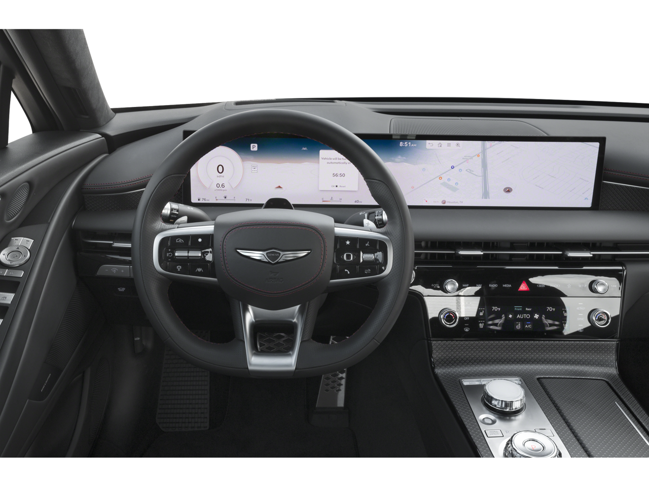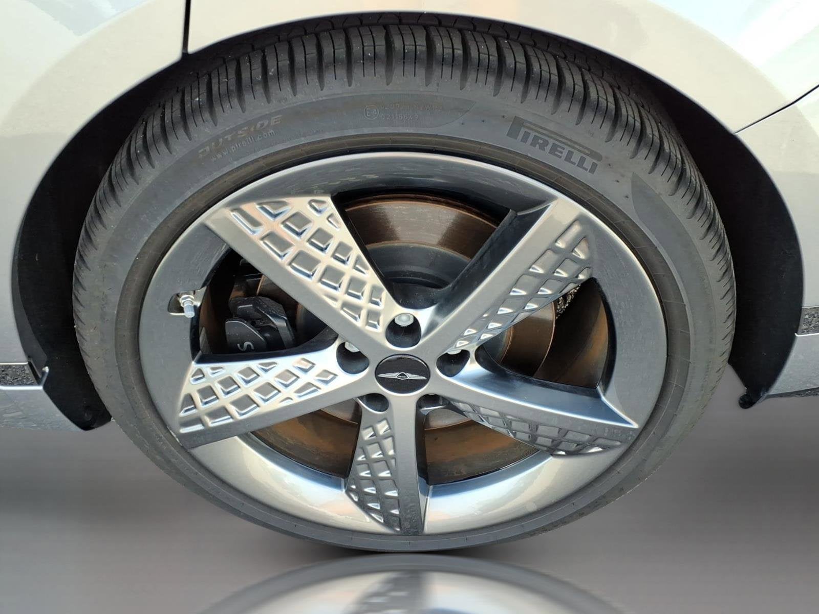 Well equipped with: Option Group 01, 18 Speakers, 4-Wheel Disc Brakes, ABS brakes, Adaptive suspension, Air Conditioning, Alloy wheels, AM/FM radio: SiriusXM, Android Auto & Apple CarPlay, Anti-whiplash front head restraints, Auto High-beam Headlights, Auto tilt-away steering wheel, Auto-dimming door mirrors, Auto-dimming Rear-View mirror, Automatic temperature control, Bumpers: body-color, Cargo Blocks, Compass, Delay-off headlights, Driver door bin, Driver vanity mirror, Dual front impact airbags, Dual front side impact airbags, Electronic Stability Control, Emergency communication system: Genesis Connected Services, Exterior Parking Camera Rear, First Aid Kit, Four wheel independent suspension, Front anti-roll bar, Front Bucket Seats, Front Center Armrest, Front dual zone A/C, Front reading lights, Fully automatic headlights, Garage door transmitter: HomeLink, Heads-Up Display, Heated and Ventilated Front Bucket Seats, Heated door mirrors, Heated front seats, Heated rear seats, Heated steering wheel, Illuminated entry, Knee airbag, Leather steering wheel, Low tire pressure warning, Memory seat, Nappa Leather Seating Surfaces, Navigation System, NFC Key Card, Occupant sensing airbag, Outside temperature display, Overhead airbag, Overhead console, Panic alarm, Passenger door bin, Passenger vanity mirror, Power door mirrors, Power driver seat, Power moonroof, Power passenger seat, Power steering, Power windows, Radio data system, Radio: AM/FM/HD/SiriusXM Bang & Olufsen Audio System, Rain sensing wipers, Rear air conditioning, Rear anti-roll bar, Rear reading lights, Rear seat center armrest, Rear side impact airbag, Rear Window Blind, Rear window defroster, Remote keyless entry, Security system, Speed control, Speed-sensing steering, Speed-Sensitive Wipers, Steering wheel memory, Steering wheel mounted audio controls, Tachometer, Telescoping steering wheel, Tilt steering wheel, Traction control, Trip computer, Turn signal indicator mirrors, Variably intermittent wipers, Ventilated front seats, Wheel Locks, and Wheels: 20 x 8.5J Front and 20 x 9.5J Rear Sport Alloy.