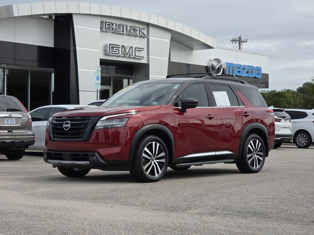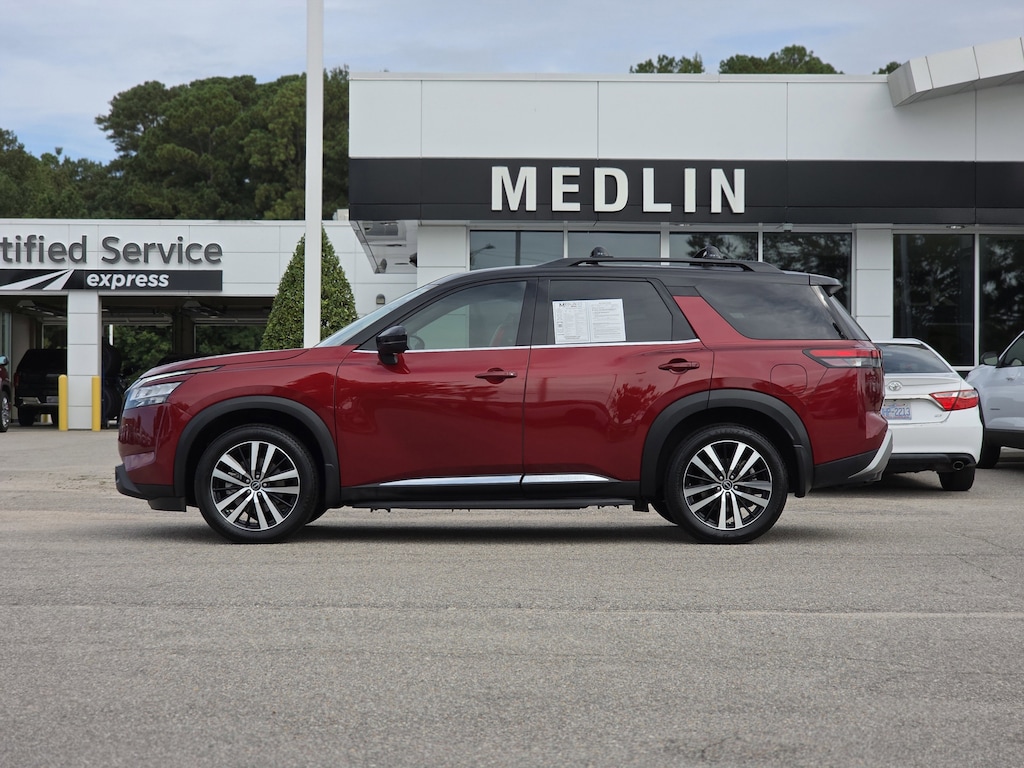 Pathfinder Platinum, 4D Sport Utility, V6, 9-Speed Automatic, 4WD, Scarlet Ember Tintcoat/Super Black, Charcoal Leather. CARFAX One-Owner. Clean CARFAX.